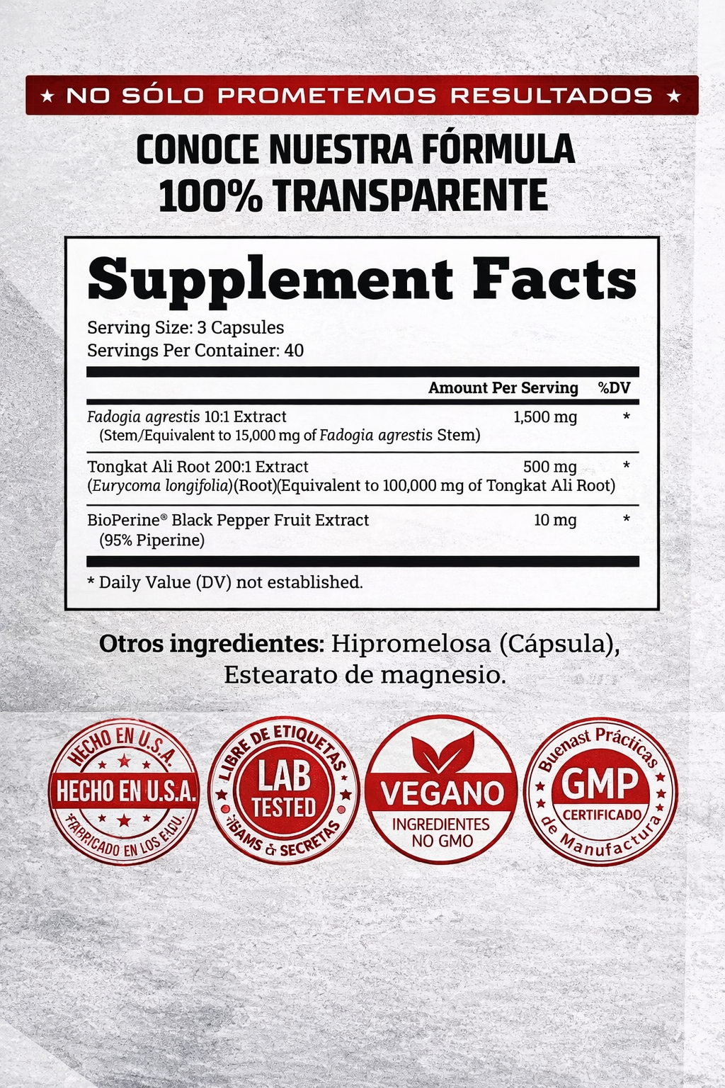 Fórmula: Libre de cafeína, gluten y estimulantes